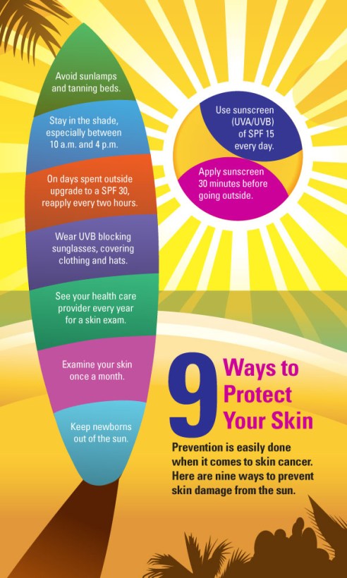 Here are just a few ideas to prevent or detect skin cancer: