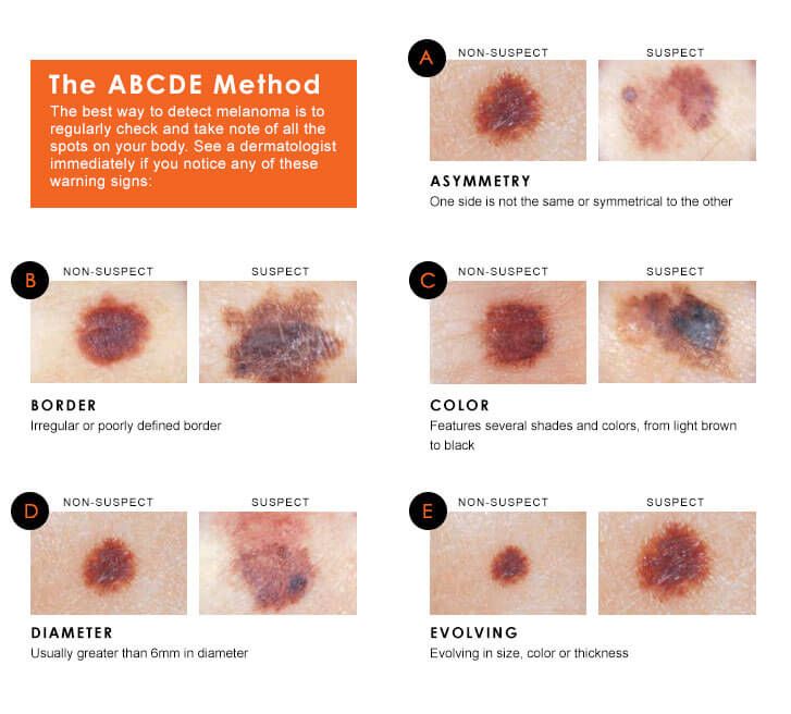 - Unusual moles (moles that change color, grow unevenly, or change in texture)