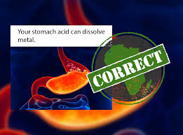 Stomach acid (conc. HCl) is strong enough to dissolve razor blades!!