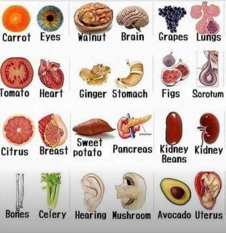 Certain foods are known to help heal particular organs. Isn’t it interesting (and in my opinion, it’s by design) that the healing food is similar in shape to the designated organ?