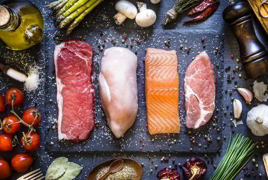 Breaks down protein in beef, chicken, pork, eggs, and nuts