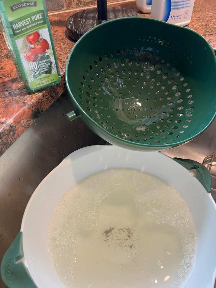 Well, I tried this new product, Harvest Pure to clean my lettuce before making my salad. My lettuce was labeled that it had been washed. Well, here’s the result of washing my lettuce with Harvest Pure—this is the dirt residue.
