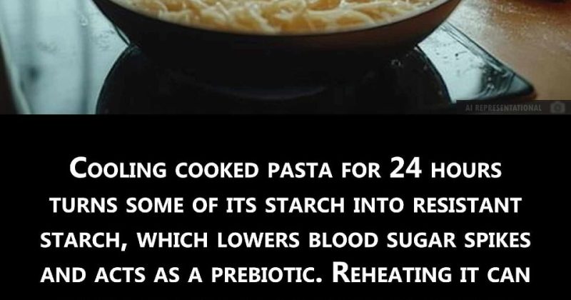 When pasta is cooked and then cooled for 24 hours, its starch structure changes. Some of the digestible starch becomes resistant starch, which the body processes more slowly. This not only helps reduce blood sugar spikes but also feeds good gut bacteria, working as a natural prebiotic.