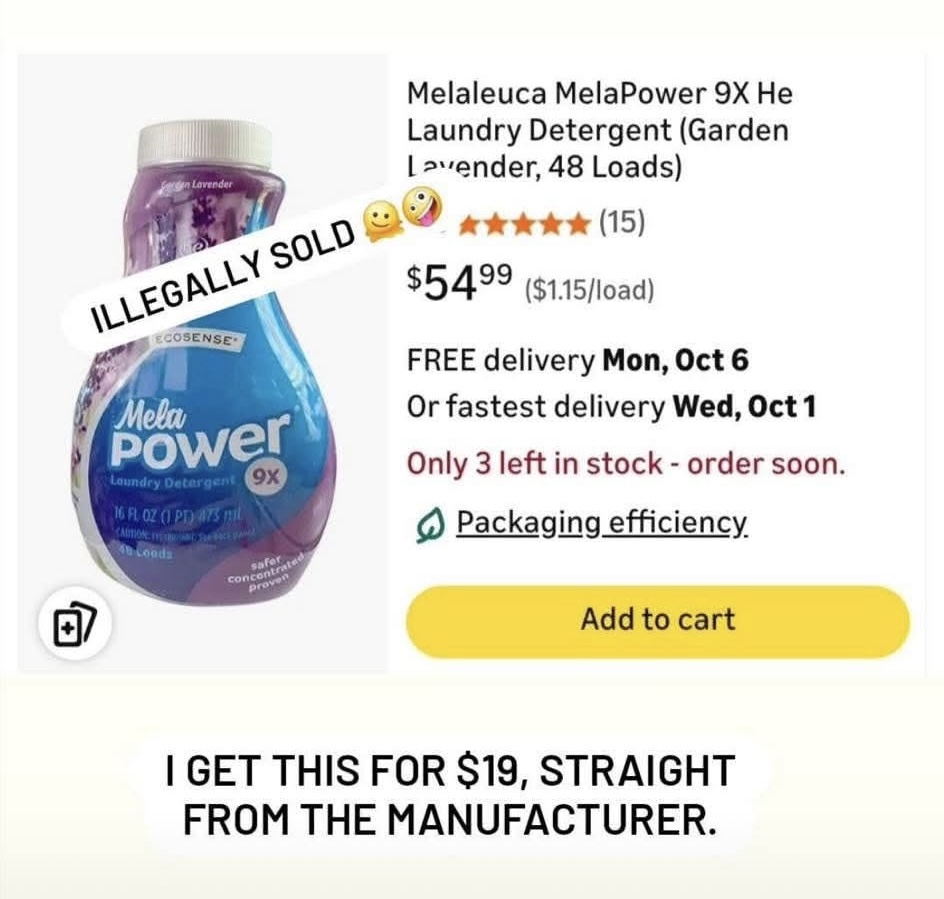 “Since the one dollar membership to try this store ends in tonight, I figured this was worth sharing. I just looked this detergent up on Amazon (where it is ILLEGALLY SOLD), and it’s $60 for this same bottle. I get this for $19, usually cheaper with a coupon because I’m a bargain shopper. People throw away SO much money because they “don’t want a membership” but dang, I was pretty tied to Amazon & Walmart before this, membership or not. The money is being spent, regardless of where you shop; it just depends if you want a trusted source, a company that cares, products that work, and ones that are made in America. And have you seen those membership prices?! $139 for the year for Amazon, $60 for the year for Costco.. INSANE. This $1 feels like chunk change, literally. I walked into Walmart when we were camping last and couldn’t believe people actually spend $12 on deodorant, mine is $5. Plus, that bottle of 409 cleaner costing $3 and says to use on countertops—but 409 is also hazardous to both humans and pets. This brand is non-toxic and the cost is $1.17 a spray bottle.