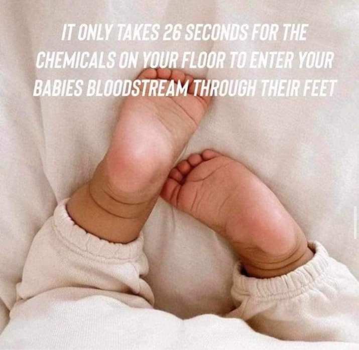 Did you know that it only takes 26 seconds for the cleaning CHEMICALS in your floor to enter your child’s bloodstream through their feet? WW! Let that sink in.